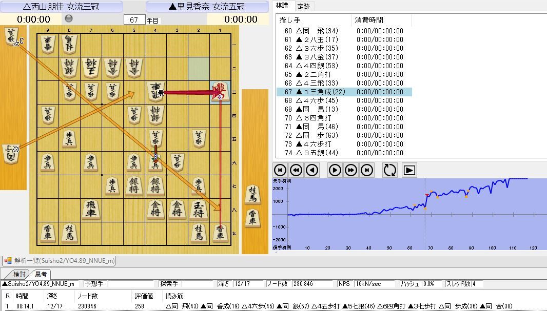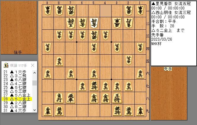 負けたとはいえ、西山女流三冠も悪手が一つ、里見女流五冠は悪手なしでお見事です。