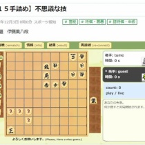 今回は、少々手数が長いけれど、伊藤果八段作「15手詰」をWebで 玉を追い詰める「技」を楽しみませんか。 「不思議な技」って、なんでしょうか。 ...